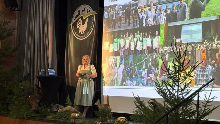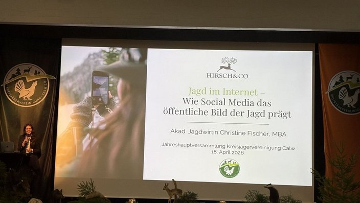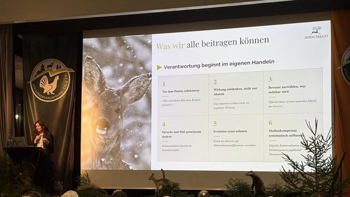Einen besonderen Akzent setzte der Vortrag von Kommunikationsexpertin Christine Fischer zum Thema „Verantwortungsvolle Jagdkommunikation im digitalen Raum". Sie verdeutlichte, wie stark soziale Medien die öffentliche Wahrnehmung der Jagd prägen und welche Chancen eine sachliche, respektvolle Darstellung bietet, um Verständnis in der Bevölkerung zu fördern. Angesichts teils emotionalisierter Debatten in sozialen Netzwerken sei eine aktive und durchdachte Kommunikation der Jägerschaft wichtiger denn je.