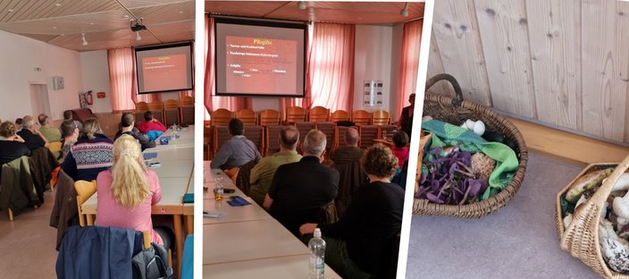 Zum anschließenden Powerpoint-Vortrag „Essbare Pilze und ihre giftigen Doppelgänger“ trafen wir uns im Gemeindesaal in Beinberg. Anschaulich, sowie unterhaltsam erläuterte Herr Dr. Bsonek die Vielfalt der Pilze, wies aber auch auf die Gefahren einer Unwissenheit hin. Alle Teilnehmer waren hochzufrieden und konnten die neuesten Erkenntnisse für ihre nächste Suche im Wald verinnerlichen.