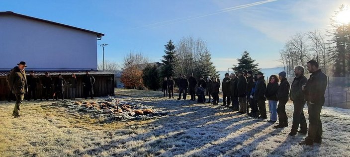 Am Sonntag, 28.01.2024 trafen sich rund 35 Jägerinnen und Jäger aus verschiedenen Revieren hinter dem Holzbronner Schützenhaus zum gemeinsamen Strecke legen. Es konnten 18 Füchse zur Strecke gebracht werden. Bei kalten Temperaturen und herrlichem Sonnenschein ertönten die Jagdhörner, an dieser Stelle herzlichen Dank an die Bläser!