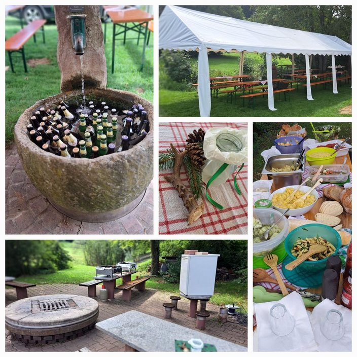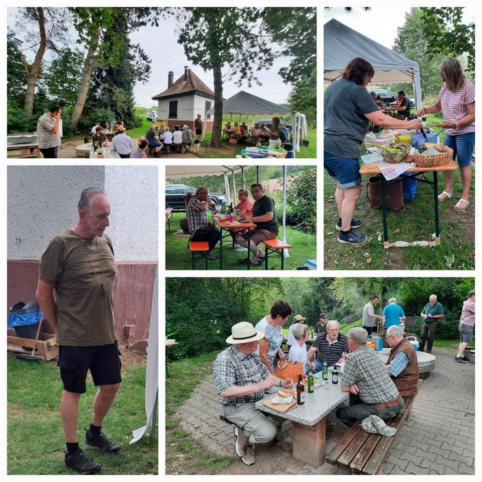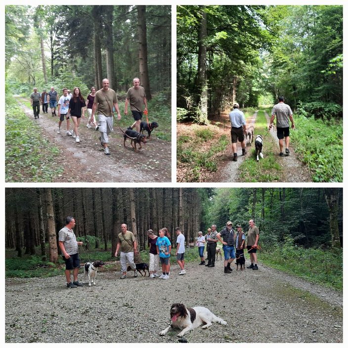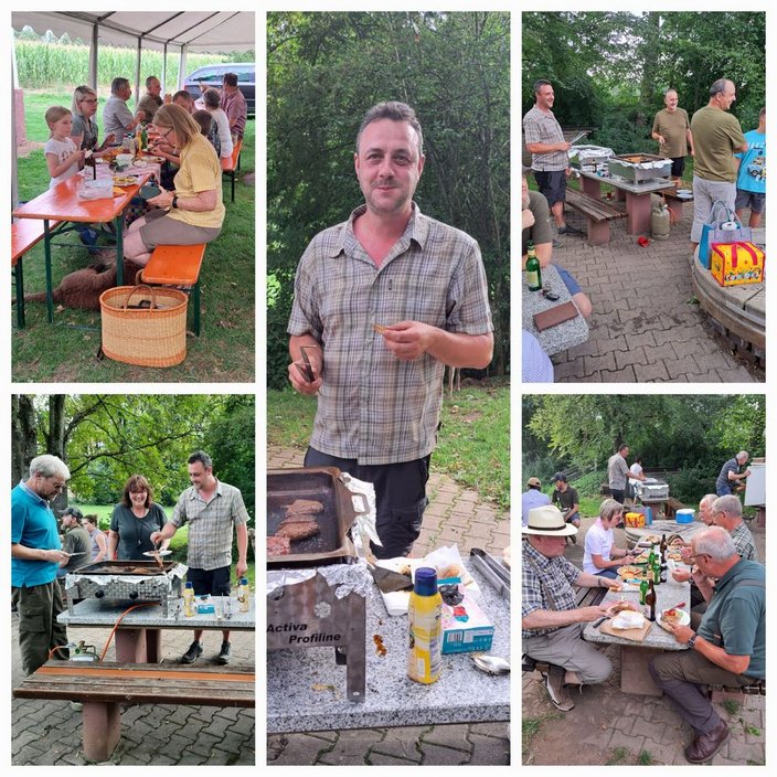 Es traf sich gegen 14:00 Uhr eine 14-köpfige Gruppe mit fünf Hunden am Holzbronner Wasserhäusle zu einem gemeinsamen Spaziergang. Bei über 30 Grad wanderte man gemütlich eine Stunde durch den Wald. Am Wasserhäusle stießen dann nach und nach weitere Jäger und Jägerinnen mit ihren Familien dazu. Gegen halb fünf konnte jeder seine Leckereien auf den Grill legen, die mitgebrachten Salate und Brote rundeten das Ganze ab. Gekühlte Getränke aus dem Brunnen waren an diesem heißen Tag natürlich besonders gefragt.
