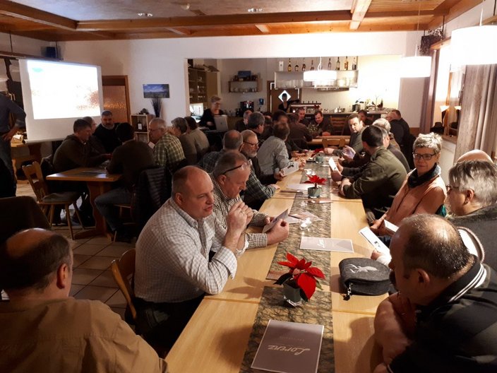 Michael Raible hatte hierfür den Leiter dieser Initiative, Herr Daniels aus Rastatt eingeladen. Der Fachvortrag war für die zahlreich anwesenden Jäger sehr informativ. Jedes angelieferte Tier mit verwertbarem Fell wird individuell markiert und diese ID-Nummer verbleibt am gegerbten bzw. getrockneten Fell. Diese Markierung ermöglicht es auch weiterverarbeitenden Betrieben wie z.B. Kürschnern, die Herkunft der Felle aus der nachhaltigen, heimischen Jagd zu dokumentieren.