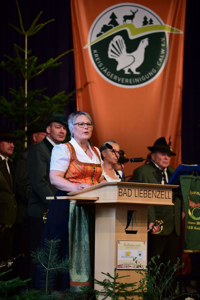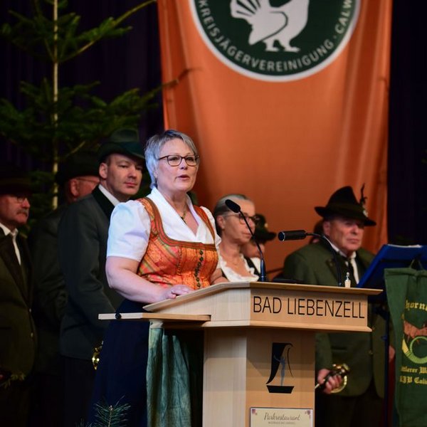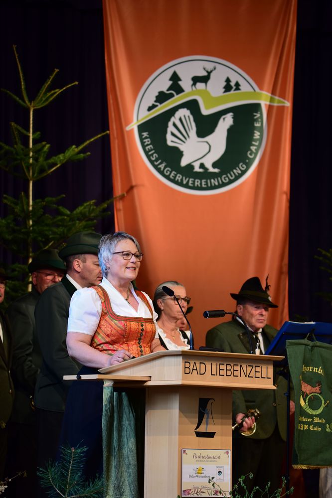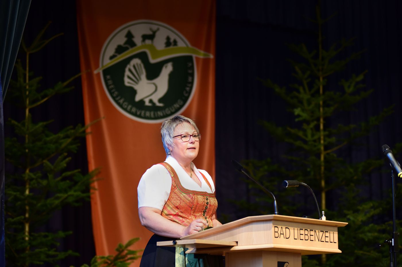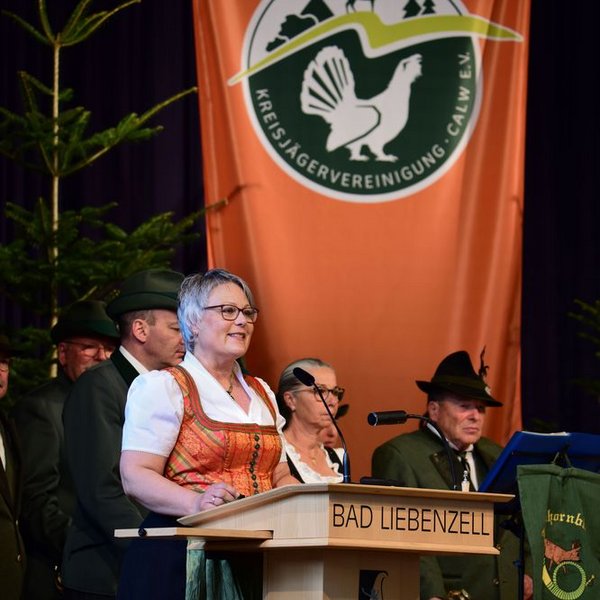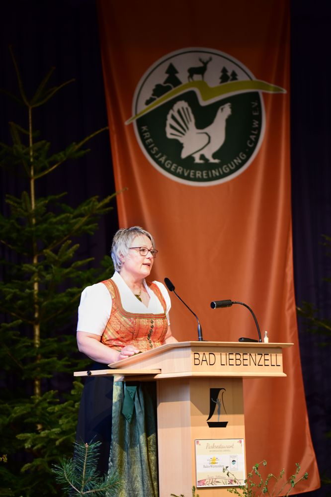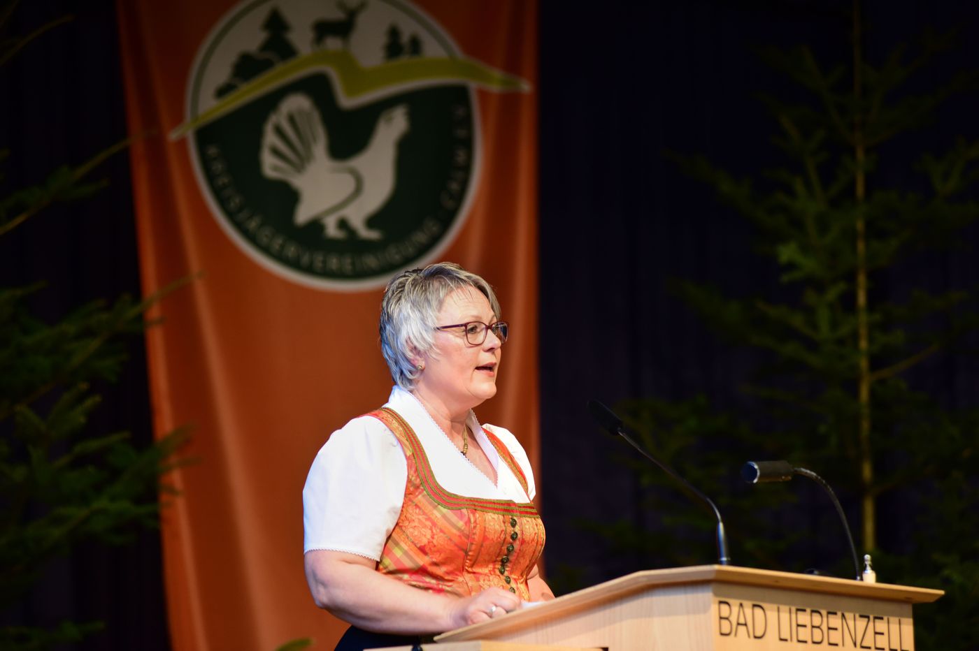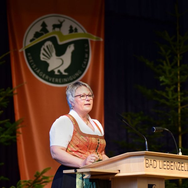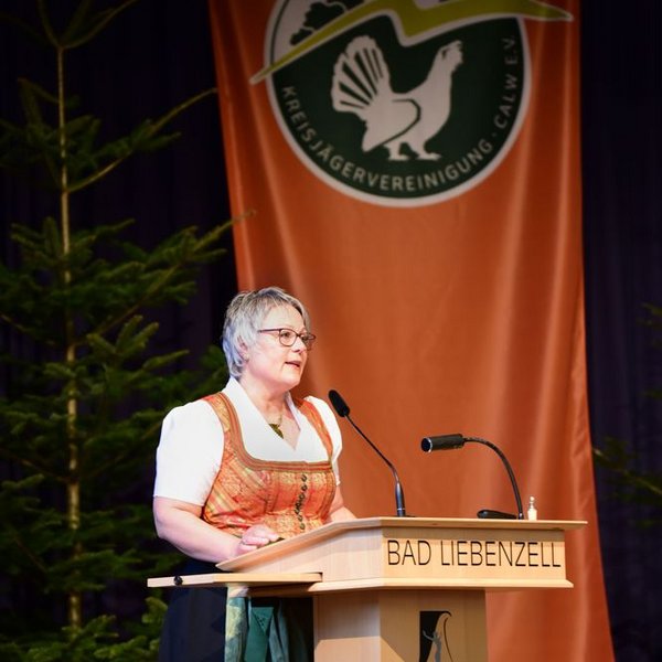 Kreisjägermeisterin Elke Marko wies auf die Folgen des Klimawandels für die praktische Jagdausübung hin, und forderte alle Akteure zum offenen und konsensorientierten Dialog auf. Die Jägerschaft werde den anstehenden Waldumbau vollumfänglich unterstützen, aber als kompetenter Partner auf Augenhöhe am runden Tisch. Der Umstieg auf klimaresistente Baumarten könne nicht alleine mit der Büchse erfolgen.