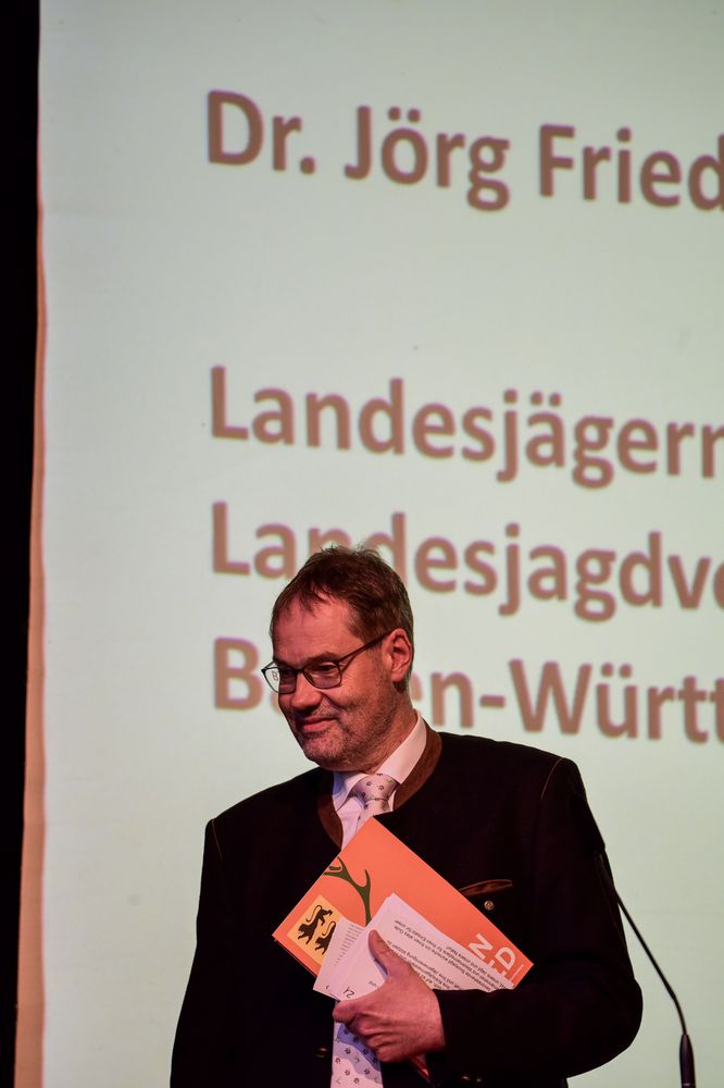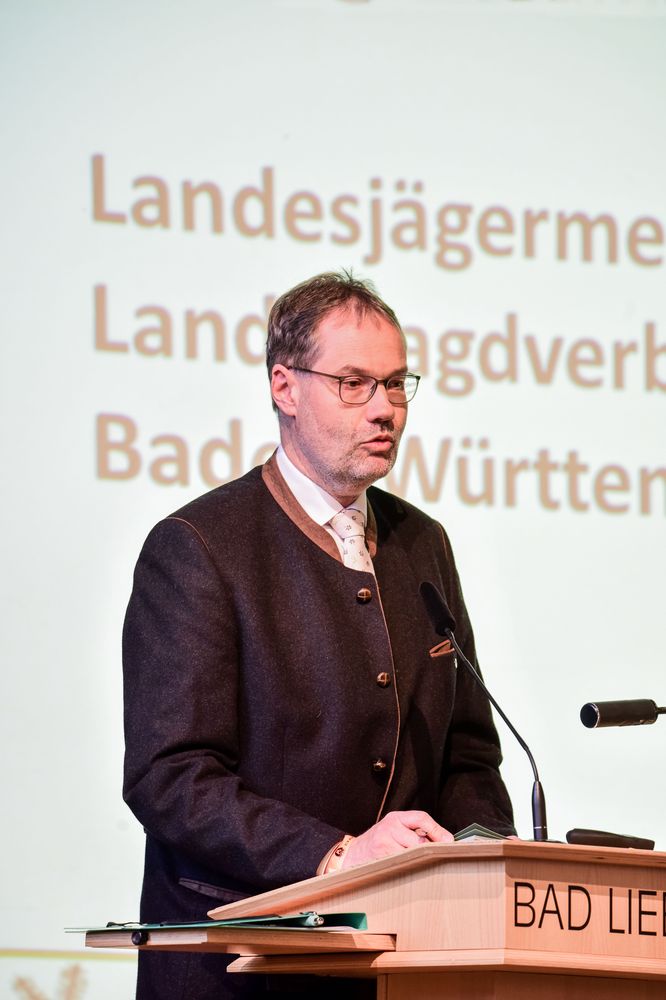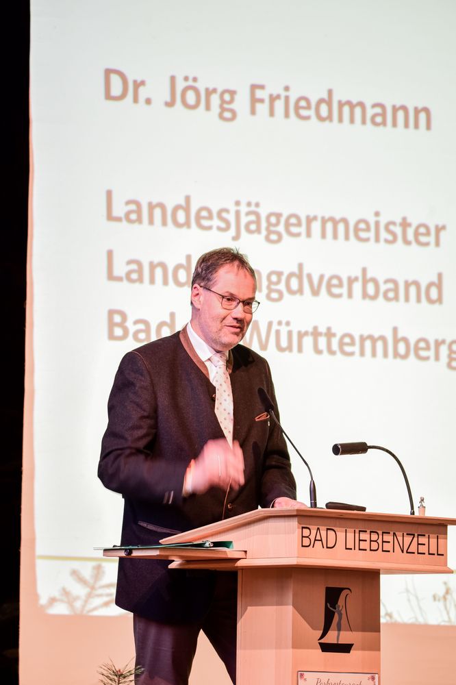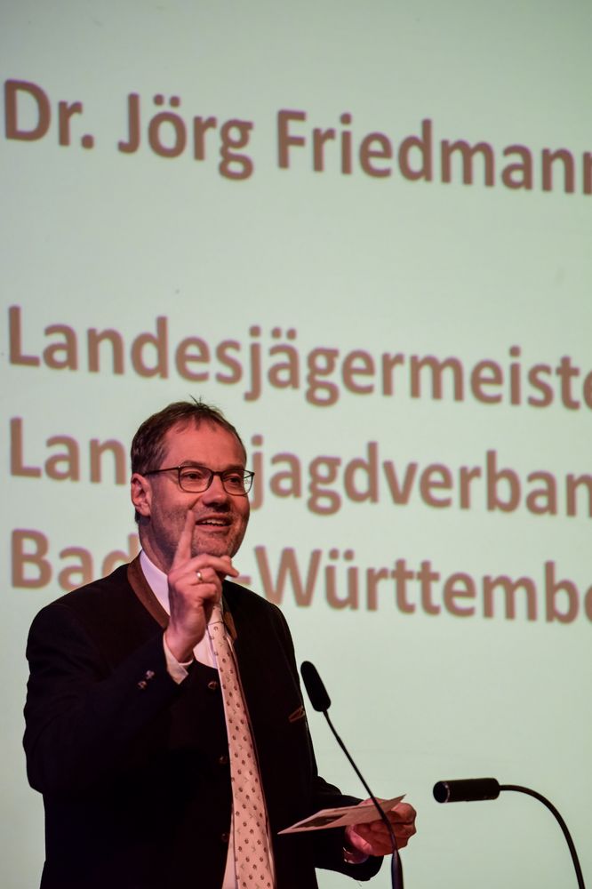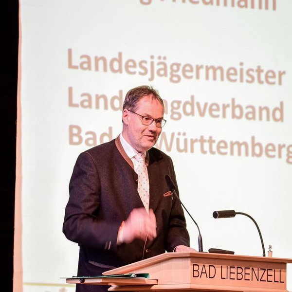 Landesjägermeister Dr. Friedmann begeisterte mit jagdpolitischen Themen, u.a. auch mit der Aufforderung an die anwesenden Vertreter des Landratsamtes Calw zu einem Verzicht der Gebührenerhebung bei unbeanstandeten Waffenkontrollen. Manuel Hagel und Landesjägermeister Dr. Jörg Friedmann forderten beide eine Überarbeitung des Jagd- und Wildtier-Managementgesetzes, insbesondere die Aufnahme von Wolf und Biber in das JWMG und kündigten eine längst überfällige Überarbeitung der Rotwildverordnung an. Diese Überarbeitung wird von der Jägerschaft sehr begrüßt. Denn solange das Rotwild in Baden-Württemberg auf vier Prozent der Landesfläche einkaserniert werde, könne von einem zeitgemäßen Wildtiermanagement nicht die Rede sein. Die Rotwildbestände in Deutschland weisen erschreckende Inzuchterscheinungen auf, so Friedmann.