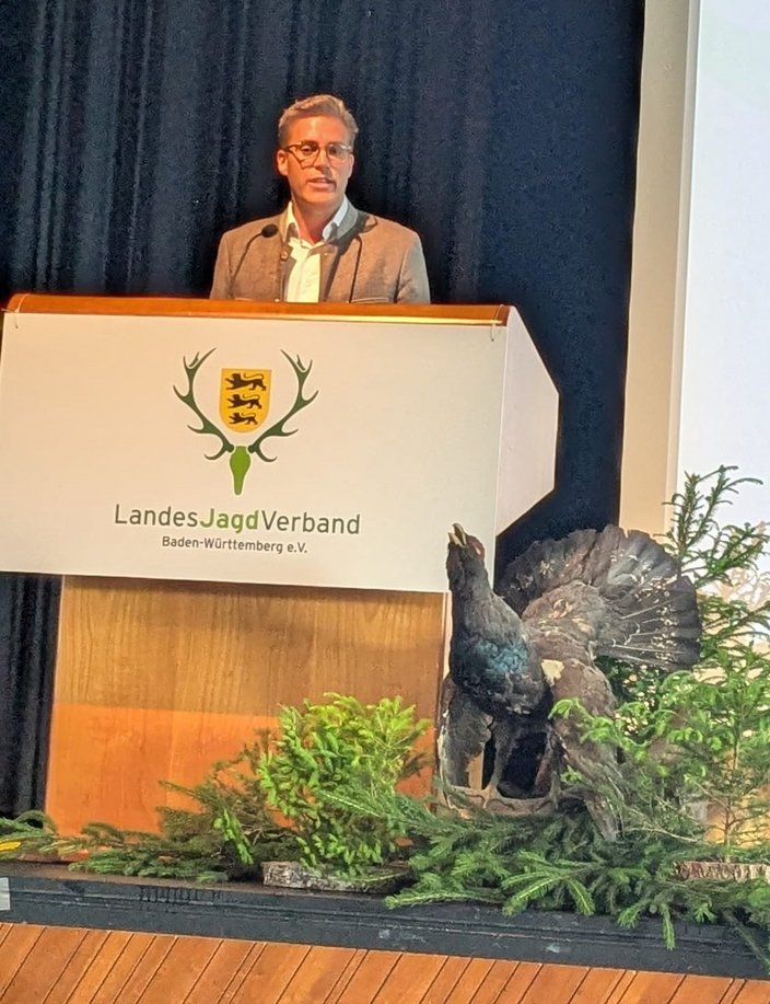 Manuel Hagel, CDU-Fraktionsvorsitzender im Landtag und selbst Jäger, hat zum Landesjägertag mehrere Ankündigungen mitgebracht, welche im Anschluss ausdrücklich vom Landesjagdverband begrüßt wurden. Diese beinhalteten: Keine Änderungen der Jagdzeit auf Rehwild; ganzjährige Jagdzeit invasiver Arten; Änderung der Rotwildverordnung hinsichtlich einer Aufhebung des Abschussgebots für Hirsche außerhalb der Rotwildgebiete zur Förderung der Artenvielfalt; nach der Landtwagswahl unter Führung der CDU Änderung der Zuständigkeit des Generalwildwegeplans – raus aus dem Verkehrsministerium und zurück in das Ministerium für Ernährung, Ländlichen u. Verbraucherschutz.