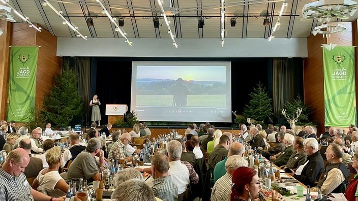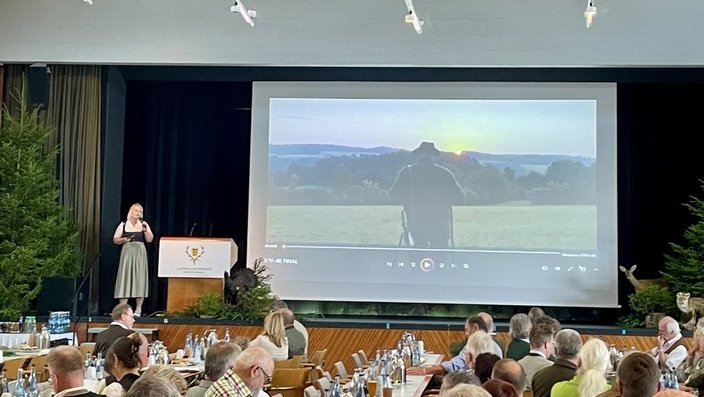 Ferner war auch der Waldumbau zur Erzielung klimastabiler Wälder ein Schwerpunktthema auf dem diesjährigen Landesjägertag. Wildbiologe Prof. Dr. Dr. Sven Herzog hob in seinem Impulsvortrag hervor, dass es keinen "Wild-Wald-Konflikt" gebe, sondern dieser Konflikt aufgrund unterschiedlicher Interessen von Beteiligten entsteht. Dieses Thema wurde bei der anschließenden Podiumsdiskussion weiter vertieft.