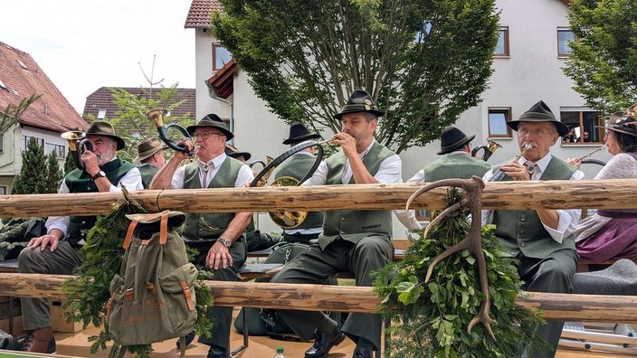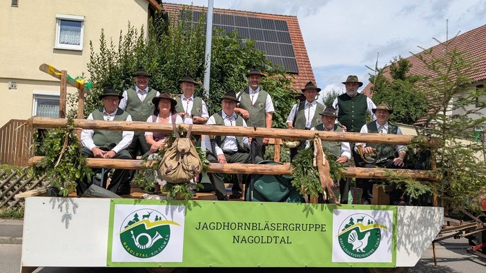Am vergangenen Wochenende wurde in Deckenpfronn das 950. Gemeindejubiläum und das 150-jährige Bestehen der Feuerwehr mit verschiedenen Veranstaltungen gebührend gefeiert. Zum Abschluss fand am Sonntag ein historischer Festumzug statt. Unsere Jagdhornbläsergruppe Nagoldtal war mit einem Wagen mit von der Partie und unterhielt die Umzugsbesucher/-innen mit traditionellen, jagdlichen Hornklängen.