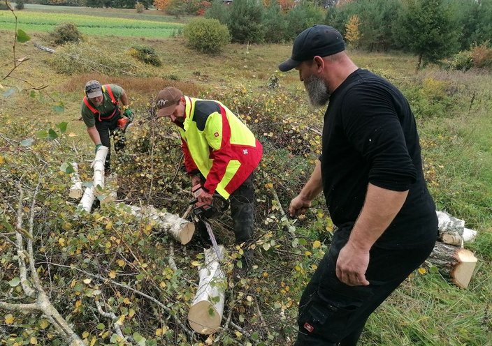 Seit der letzten Ausputzaktion sind drei Jahre vergangen, daher war es dringend nötig, die Fläche freizuschneiden, insbesondere musste der massiven Birkenverjüngung zu Leibe gerückt werden. Mit vereinten Kräften und dem richtigen Gerät konnte die Aufgabe zügig bewältigt werden. Zum belohnenden Abschluss ging es dann in die Jagdhütte von Rolf, wo Heide Dittus alle mit einem herzhaften Vesper versorgte.